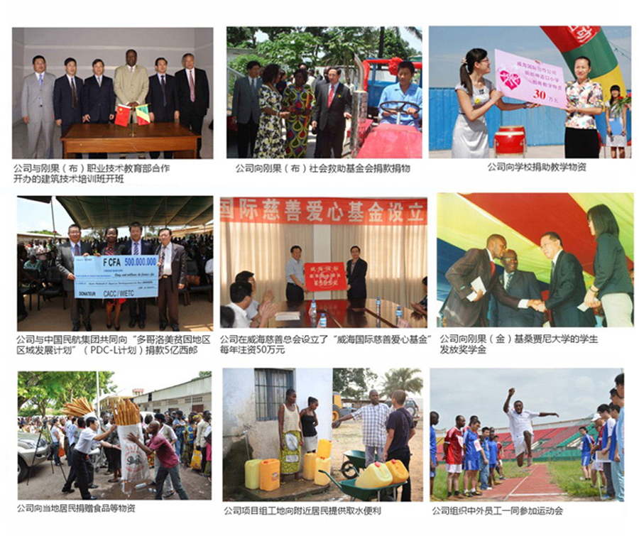 公司積極參加各種公益慈善活動。在國內,公司通過捐款捐物、設立獎學金以及捐建設施等方式長期資助神道口小學及中學、山東建筑大學、威海兒童福利院,支持社區(qū)發(fā)展;在威海市慈善總會設立“威海國際愛心基金”,每年至少捐資50萬元,是市慈善總會設立的所有冠名基金中最大的一個。在國外,向各類社會救助機構、學校、國家運動隊等提供長期資助;發(fā)生自然災害或社會危難時,公司竭盡所能,參與救助;在國外利用施工力量,為當?shù)鼐用裥迯偷缆罚峁┧?、電便利,為政府捐建公共設施,等等。作為公司的一項制度,境外各屬地公司每年都要提出符合當?shù)貙嶋H的履行社會責任計劃清單,確定不同主題的關愛捐獻活動。目前,公司在慈善公益方面的投入已達數(shù)千萬元人民幣。