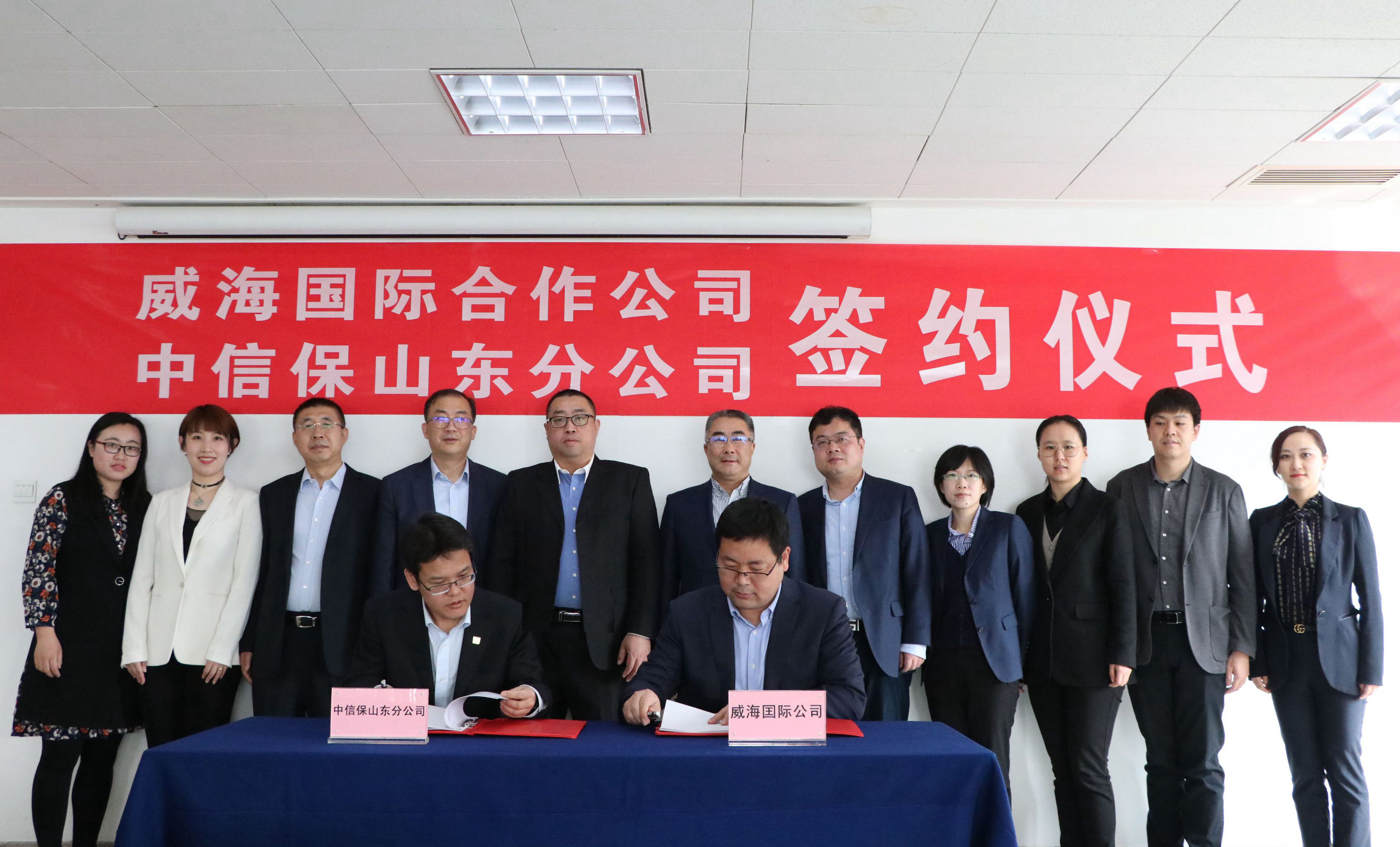 An 8-member delegation from China Export & Credit Insurance Corporation Shandong Branch (Sinosure Shandong), including General Manager Chang Chuan and General Manager Assistant Wang Luguang, visited Weihai International Economic & Technical Cooperative Co., Ltd. (WIETC) on March 10. Chairman & President Zhang Shicheng and other leaders of WIETC received the delegation. The two sides held fruitful talks on cooperation after Sinosure Shandong listed WIETC as one of Sinosure's 8 key customers in key industries in Shandong (the only one in Weihai), and signed the cooperative agreement for 2021.