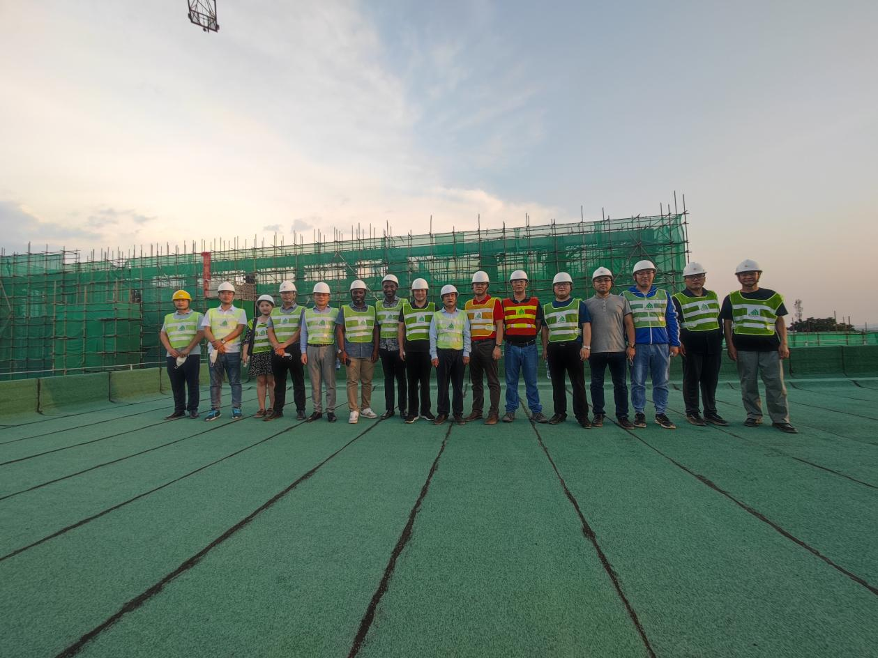 As the last bucket of concrete was poured into the dosing room of the water treatment plant on May 8, all the single main structures in phase I of the Ozone Water Project in DR Congo were completed. On the same day, the project team held a ceremony attended by Mr. Tu Dajun, the chairman of WIETC Zhengwei DR Congo, Yu Qinghua, the general manager, and managers of of relevant departments to celebrate the milestone accomplishment of the project.