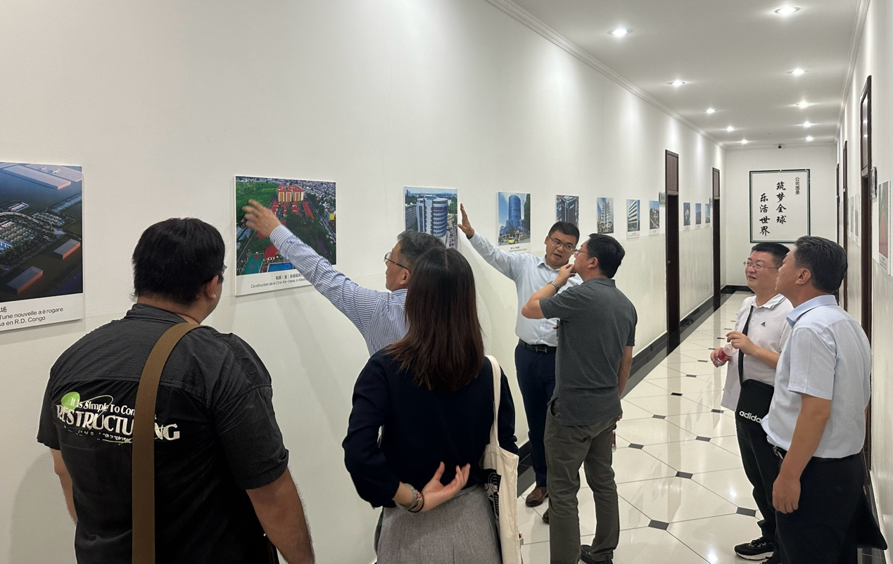 Ambassador Zhao Bin and his delegation came to the residential and office areas of WIETC DRC Company and visited the staff dormitories, library, leisure & sports venue and vegetable plantations. Chairman Tu Dajun reported to the ambassador about the company's development in DRC, providing an overview of the airport, roads, public buildings and other projects built by the company over the past decade in DRC.