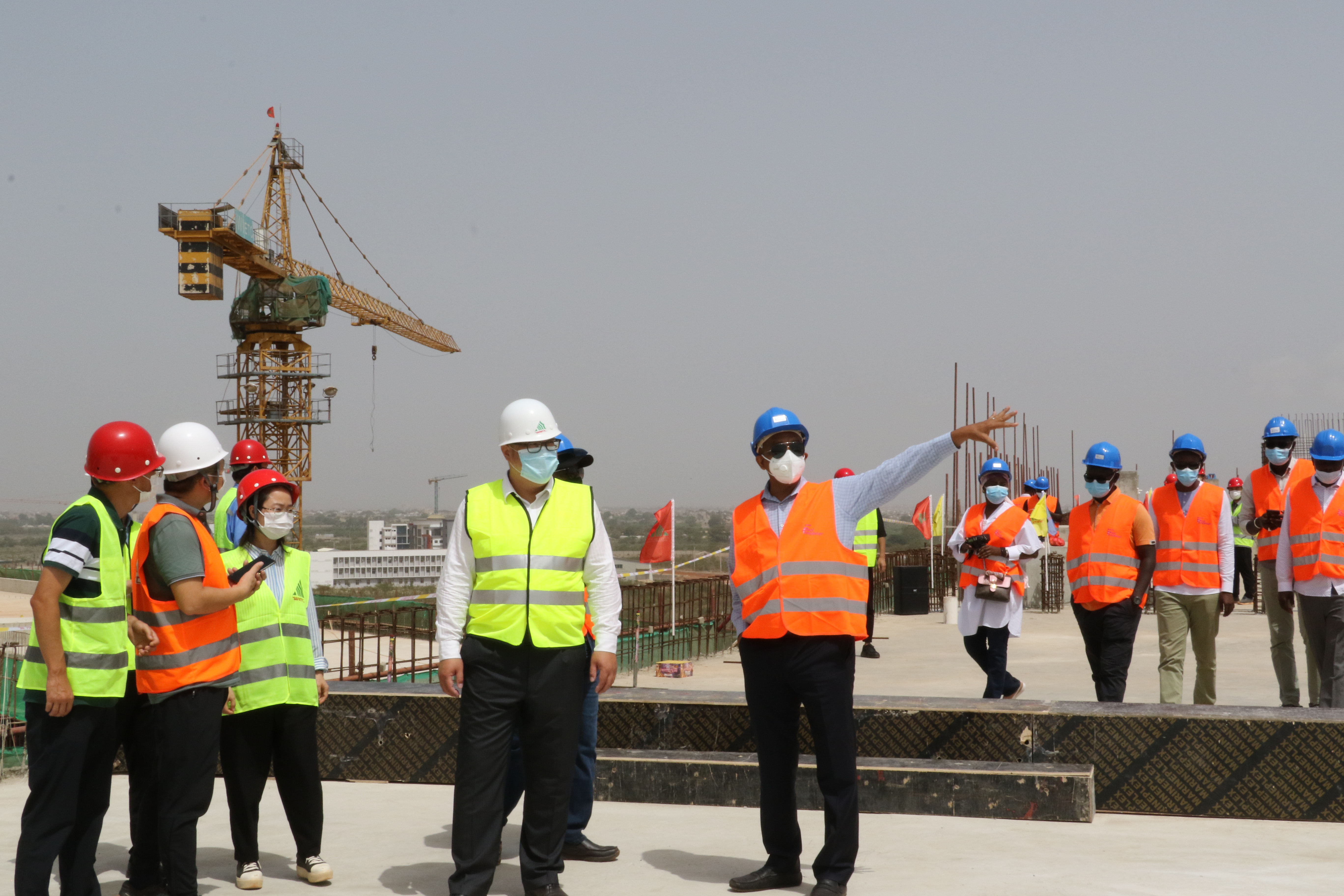 Le Président du conseil d'administration et le Président-directeur général de la Société ZHANG Shicheng (quatrième à partir de la gauche) sur site du projet