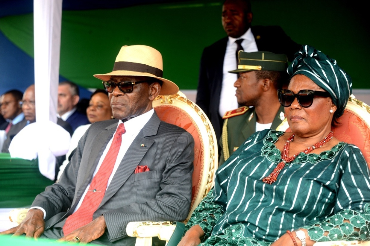 Le Président Obiang (gauche) et la Première dame assistent à la cérémonie d'inauguration