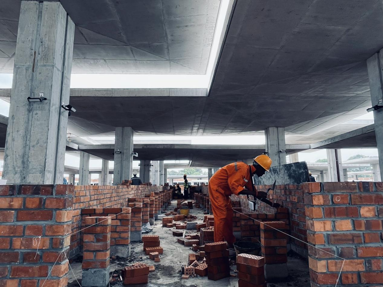 Dans les quelques mois qui ont suivi l'achèvement des travaux de gros ?uvre, Alan a répondu aux attentes et a brillamment dirigé l'équipe pour achever les travaux de ma?onnerie des stands de la zone A, chaque stand avait une brique rouge placée par lui-même.