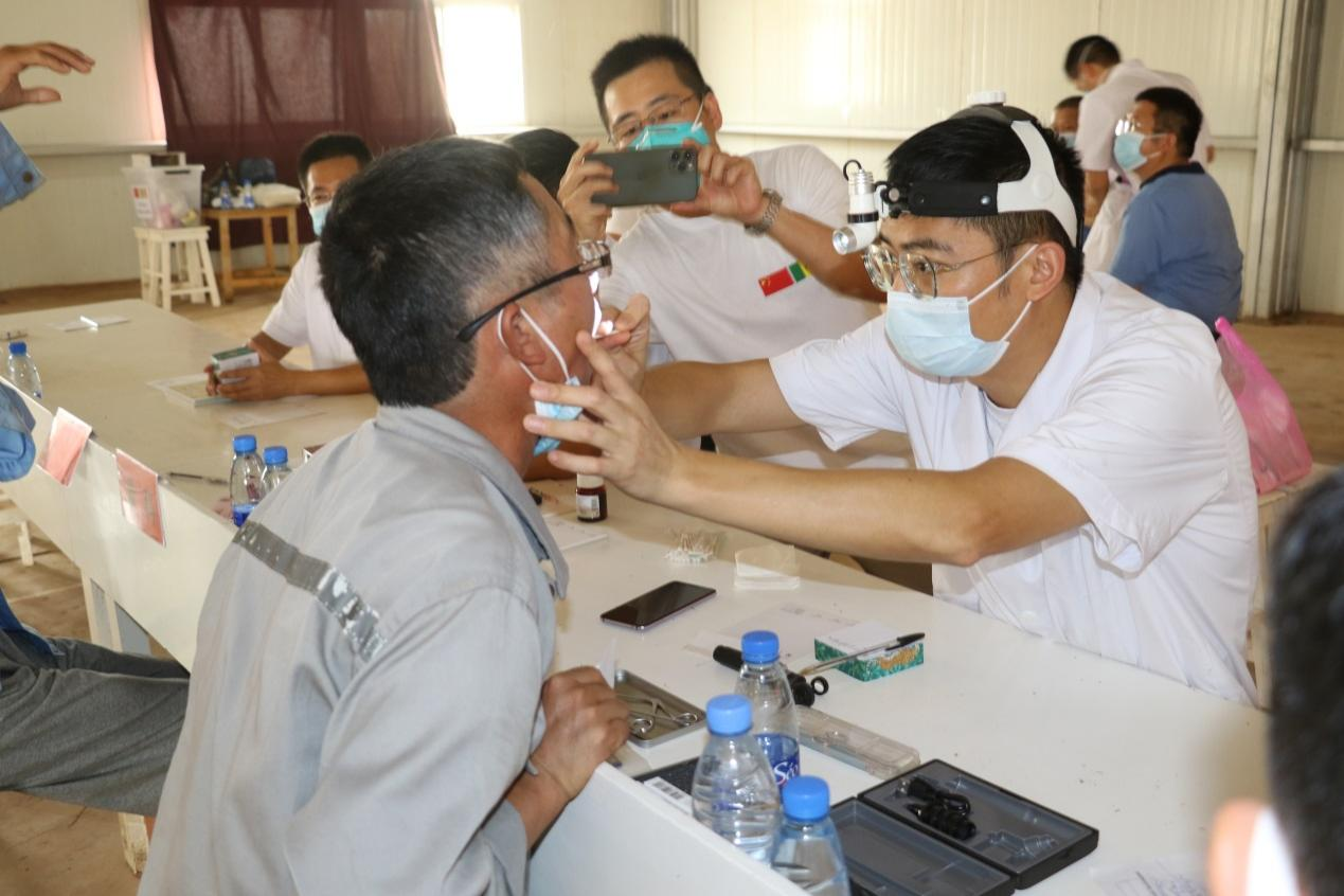 現(xiàn)地時(shí)間6月4日午後に、セネガル正威會(huì)社の斡旋により、中國第19陣セネガル支援醫(yī)療隊(duì)成員は、呉啓明隊(duì)長の引率の下で、セネガルの國連オフィスビル?プロジェクトチームを訪れ、無料診療活動(dòng)を?qū)g施しました。プロジェクトチームにおける80余名の中國側(cè)従業(yè)員は、診療を受けました。