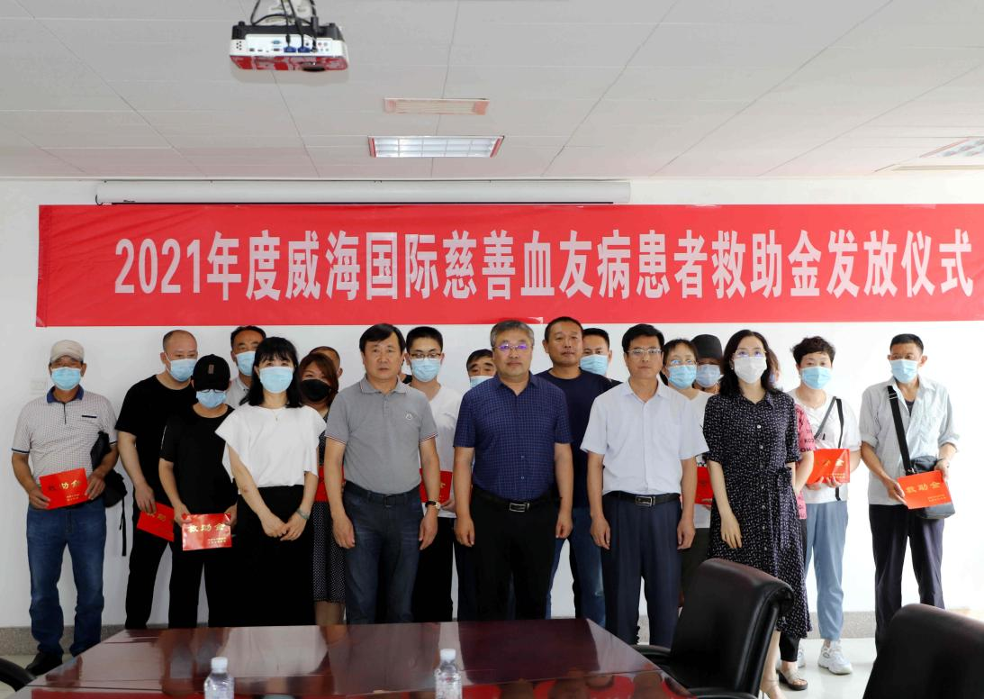 6月29日に、威海國際慈善血友病患者救助金支給式は、當(dāng)社五階の會議室に進んでいました。威海市社會救助サービスセンター主任、慈善総會名譽副會長王明源、市慈善総會事務(wù)室副主任劉書青と當(dāng)社労働者組合主席李軍海は、救助金支給式に出席し、それに加えて、20名患者に、8.78萬人民元の救助金を支給しました。威海國際慈善愛心資金は、連続10年間全市の血友病患者を救助しています。いままで、當(dāng)該救助プロジェクトは、累計106.72萬人民元を支出して、170延べ人數(shù)の患者を救助しました。