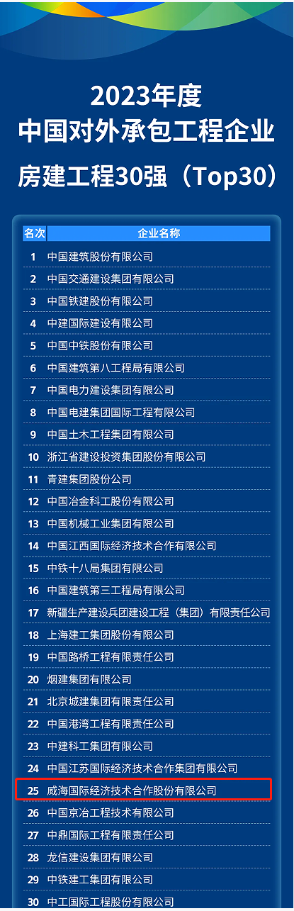 5月7日、2024対外請(qǐng)負(fù)工事業(yè)界発展大會(huì)の開(kāi)催期間中、中國(guó)対外請(qǐng)負(fù)工事商會(huì)は2023年度中國(guó)対外請(qǐng)負(fù)工事企業(yè)に関する複數(shù)のランキングを発表した。會(huì)社は中國(guó)対外請(qǐng)負(fù)工事企業(yè)ベスト100選(65位)、住宅建設(shè)工事ベスト30選(25位)、アフリカ地區(qū)事業(yè)ベスト30選(25位)に選ばれ、會(huì)社の成長(zhǎng)続く海外発展力を改めて體現(xiàn)した。