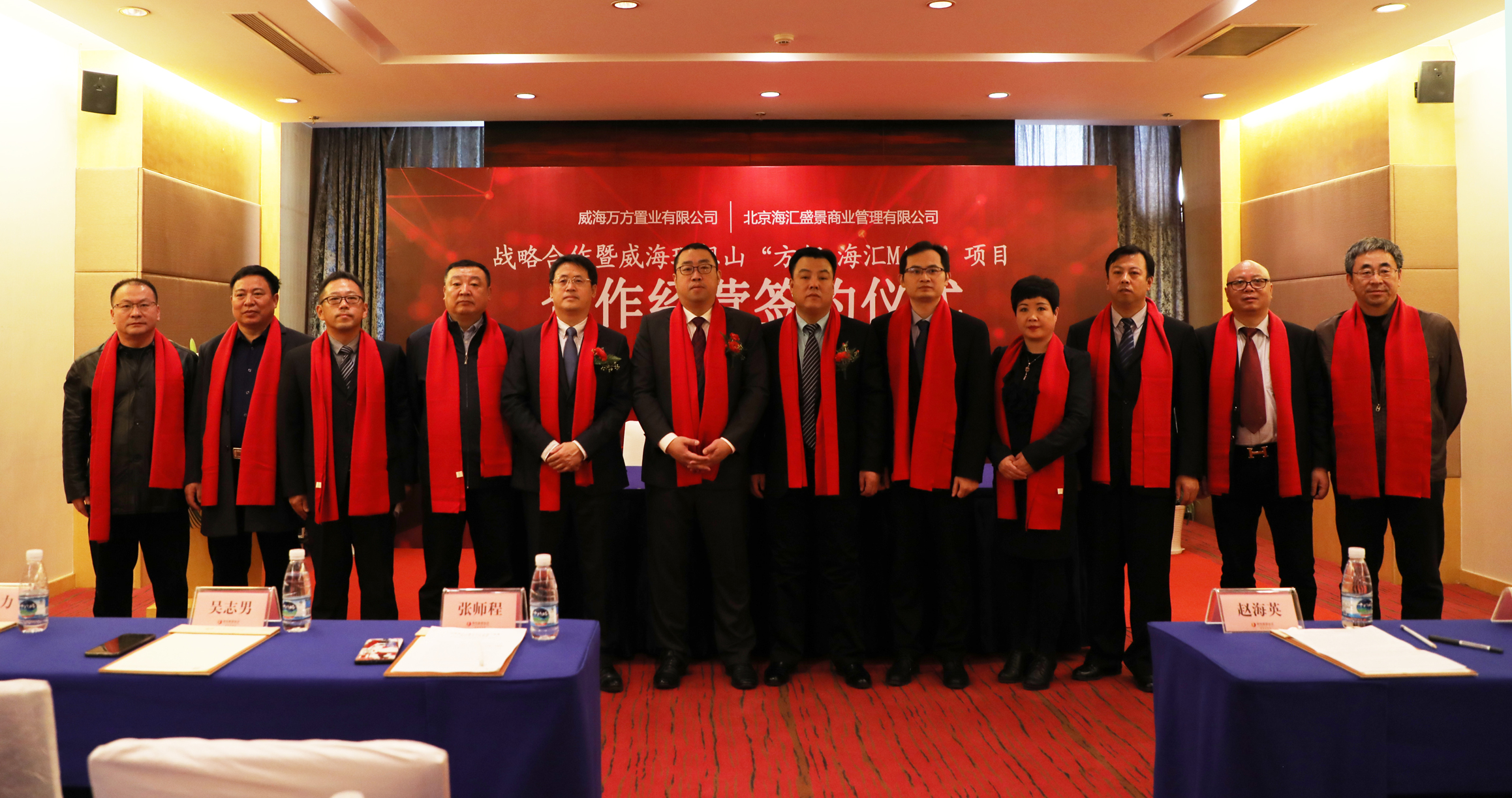 威海國(guó)際公司董事長(zhǎng)兼總裁張師程、北京海匯盛景商業(yè)管理有限公司總裁趙海英、威海國(guó)際公司副總裁兼萬(wàn)方置業(yè)公司總經(jīng)理吳志男等20余位領(lǐng)導(dǎo)與嘉賓出席簽約儀式。萬(wàn)方置業(yè)公司副總經(jīng)理梁志濤主持簽約儀式。