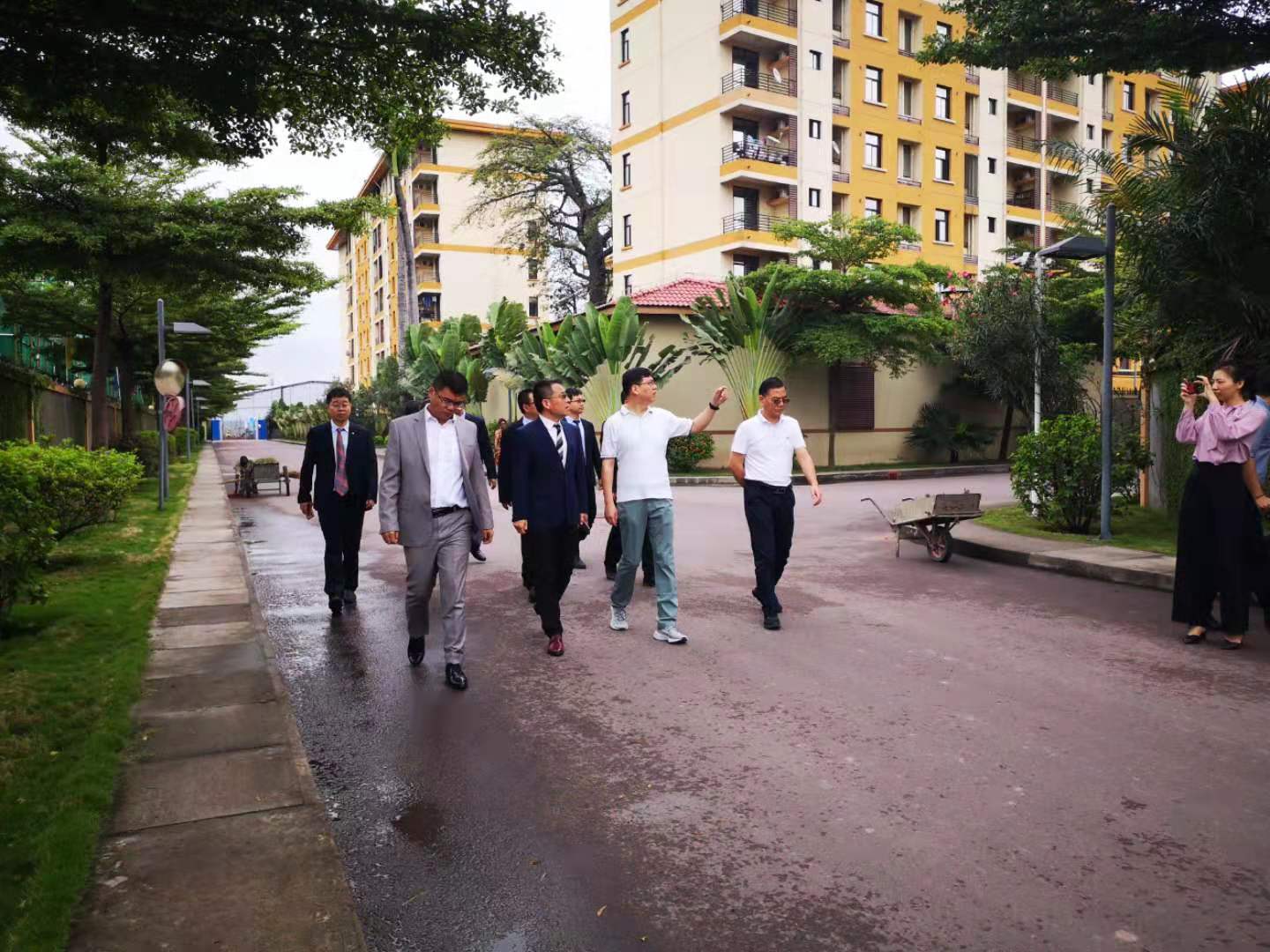 朱京大使一行聽取了剛果(金)正威公司、房地產(chǎn)公司、恩吉利機(jī)場(chǎng)項(xiàng)目組關(guān)于業(yè)務(wù)發(fā)展情況的匯報(bào),并對(duì)房地產(chǎn)二期酒店和辦公樓現(xiàn)場(chǎng)、房地產(chǎn)公寓區(qū)、別墅區(qū)、生活配套區(qū)、正威公司辦公室以及恩吉利機(jī)場(chǎng)項(xiàng)目組進(jìn)行了實(shí)地視察。