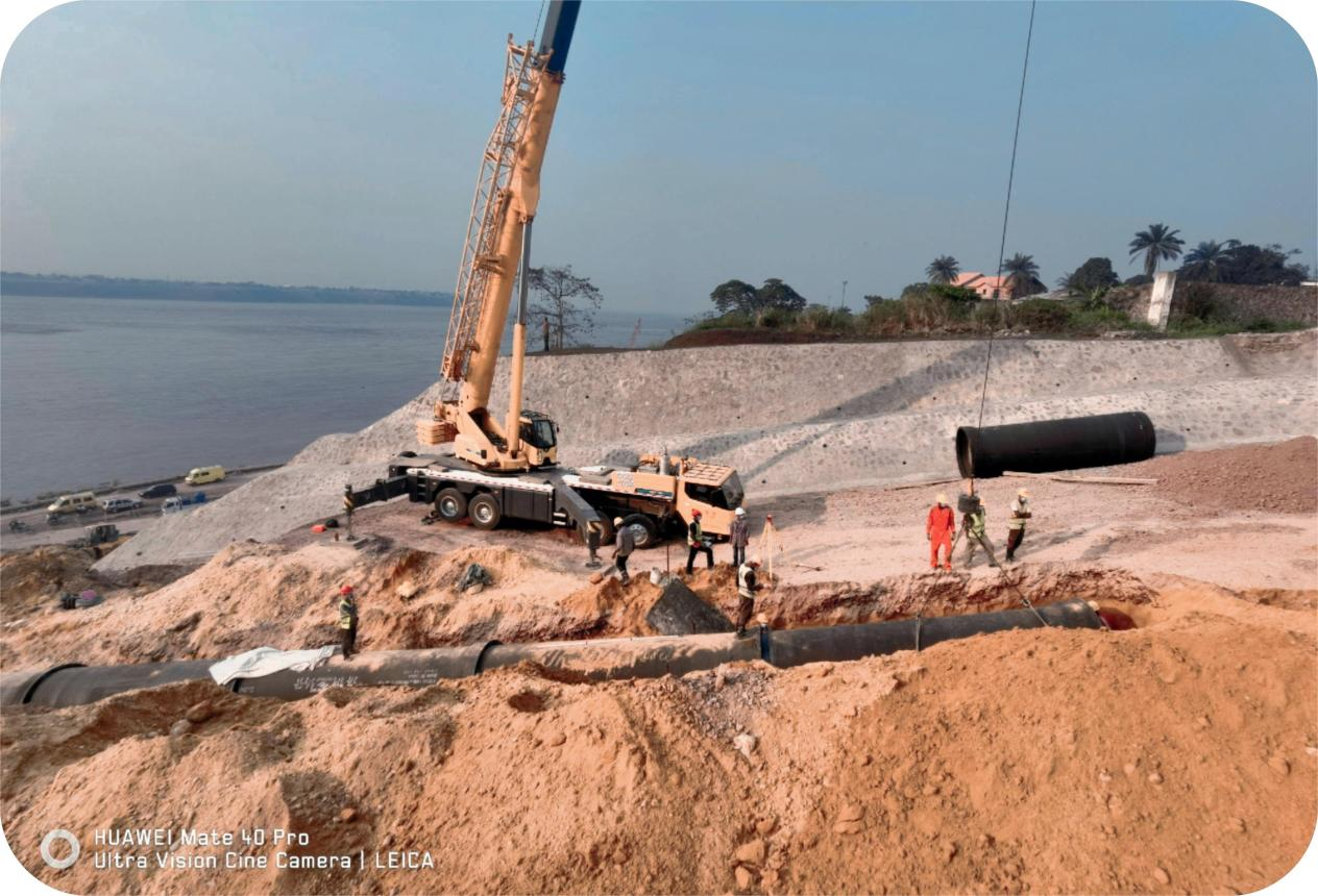 項目簡介:項目有世界銀行出資,施工內容主要為金沙薩南、北部城區(qū)一級、二級配水管網(wǎng),球墨鑄鐵管DN300-DN1400為17.36KM,de90-de315HDPE管為31.27KM ;附屬工程包括75個閥門井(室)土建工程、228米跨橋管線支撐柱施工、馬場等管線防侵蝕工程、道路恢復等。